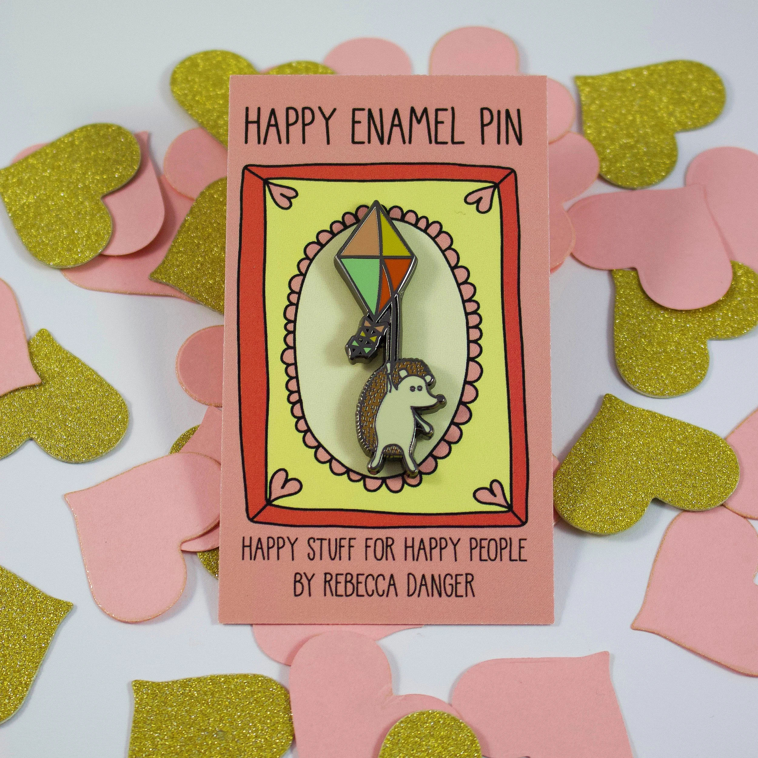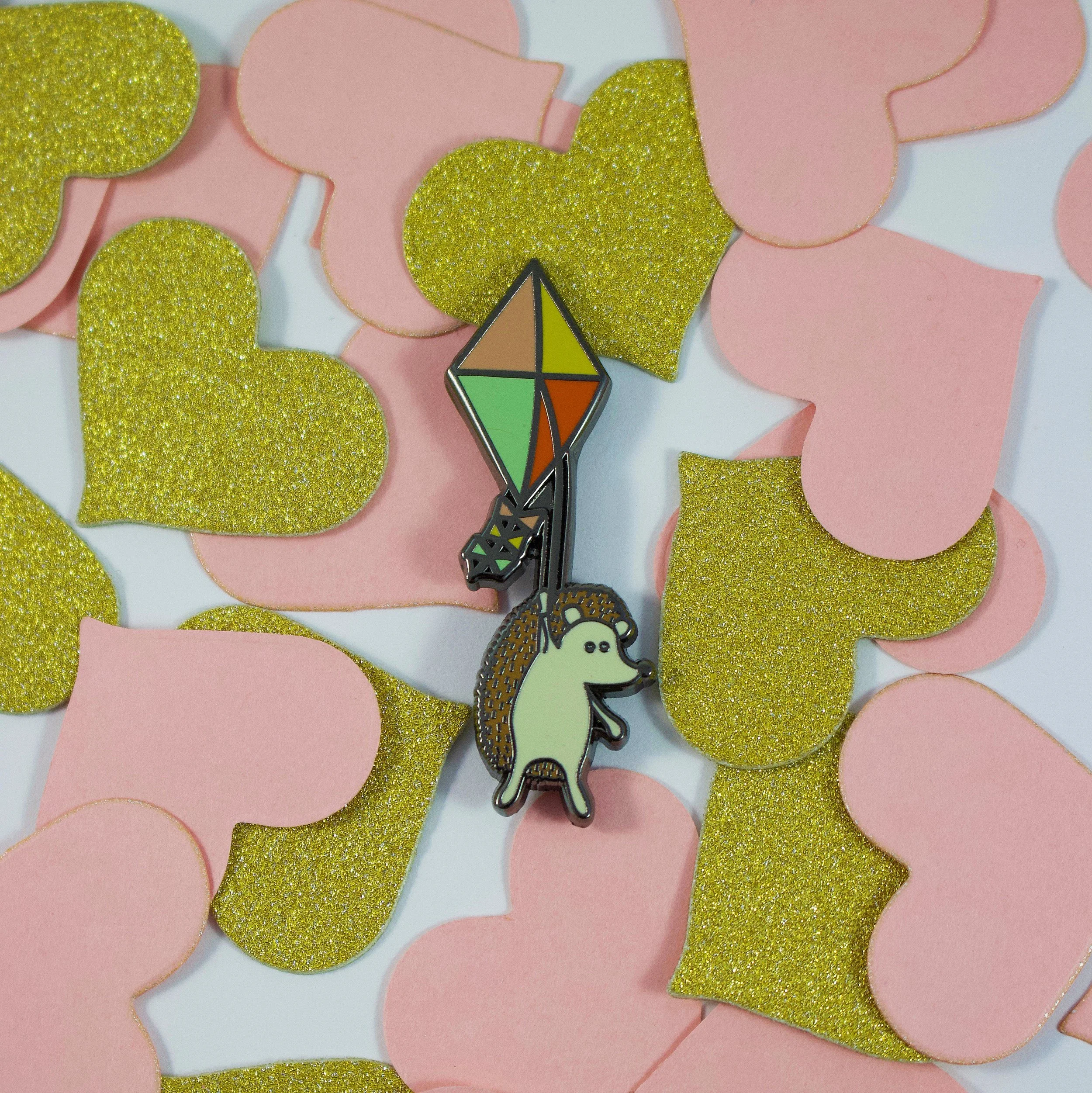 Ridiculously cute happy hedgie on a kite enamel pin! Just the thing you need to add a little more happy to your day. An enamel pin made from my original "Hedgehog On A Kite" illustration.