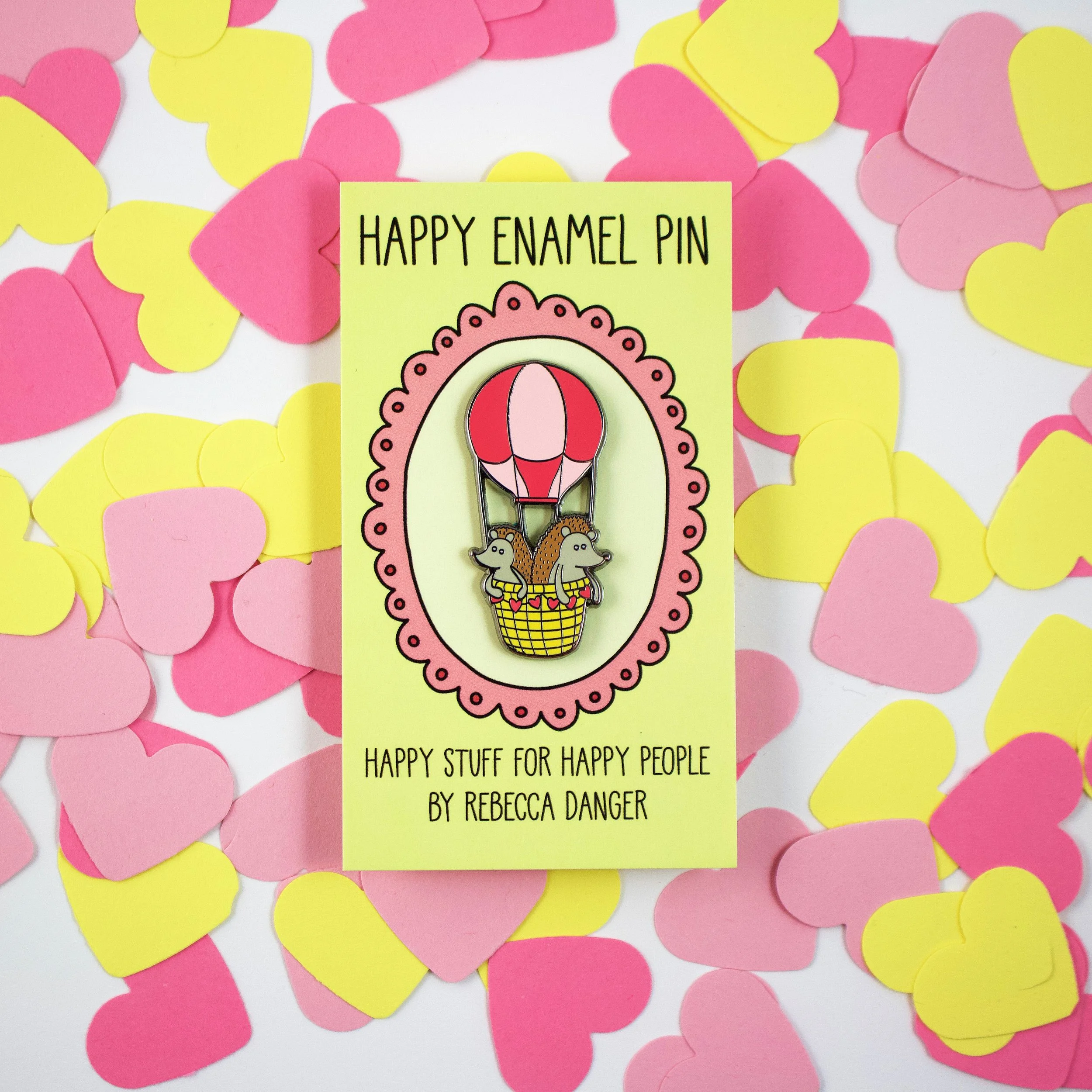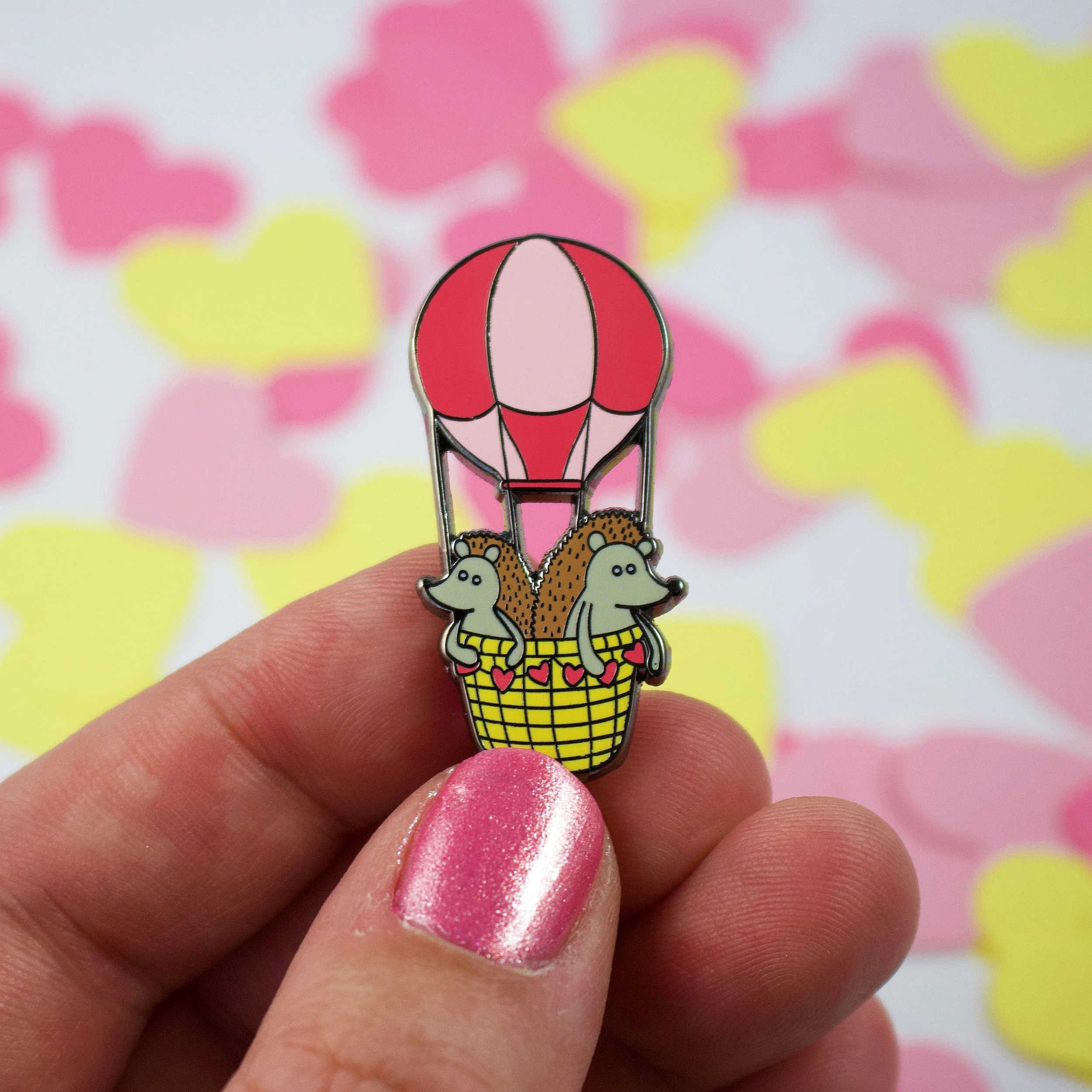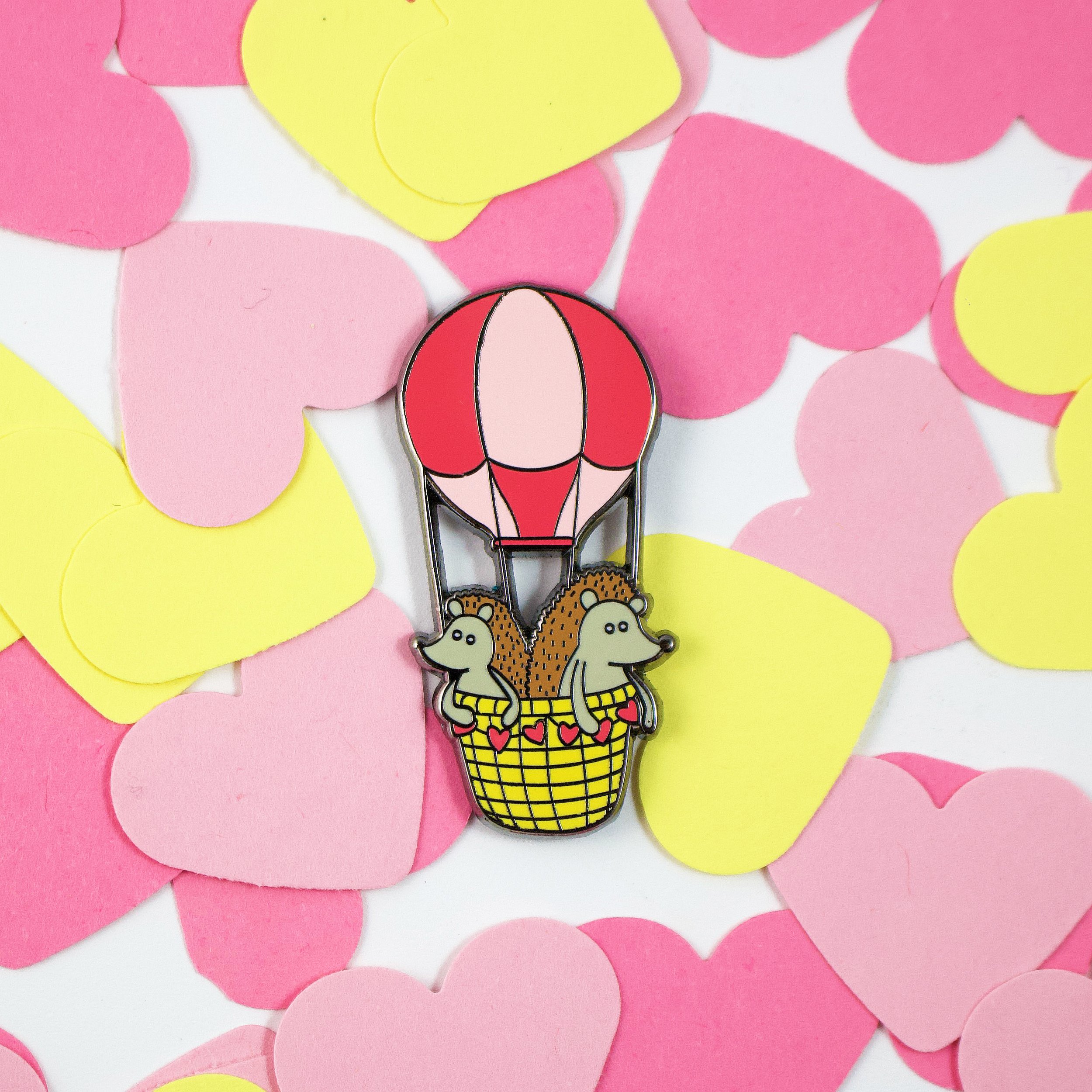 Ridiculously cute pair of hedgies in a hot air balloon enamel pin! Just the thing you need to spark joy and add a little more happy to your day. An enamel pin made from my hot air balloon hedgies illustration.