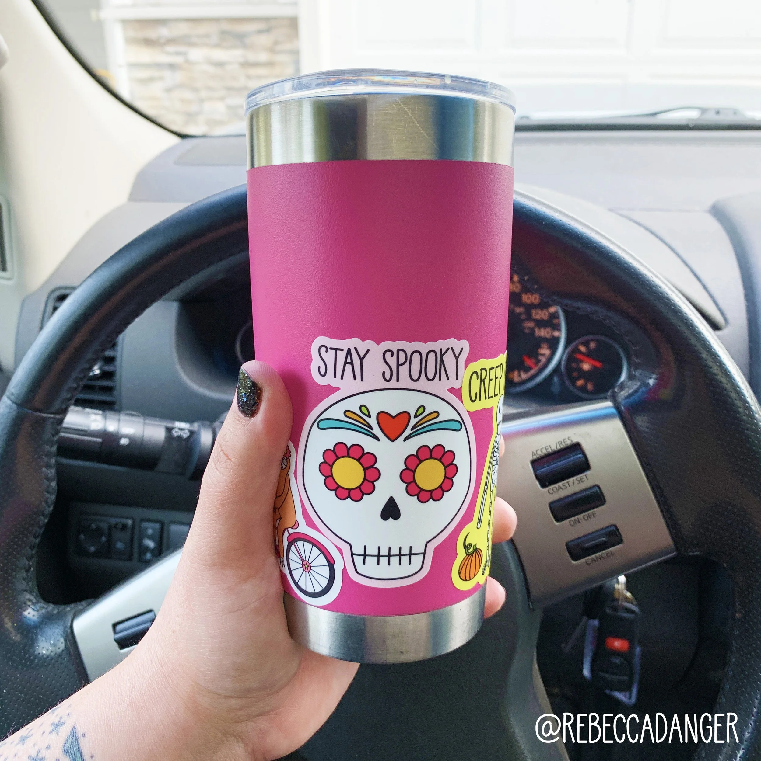 Ridiculously cute "Stay Spooky" sugar skull sticker made using my original illustration! Just the thing you need to add a little more happy to your day. And though it is Halloween-y, I made it generalized enough that you can totally rock this all year. Go ahead, you have my permission. And, I will be proudly displaying this year round on my stainless coffee cup with you!